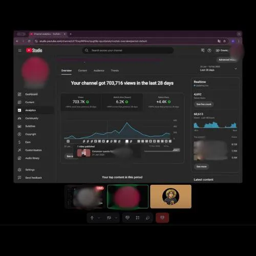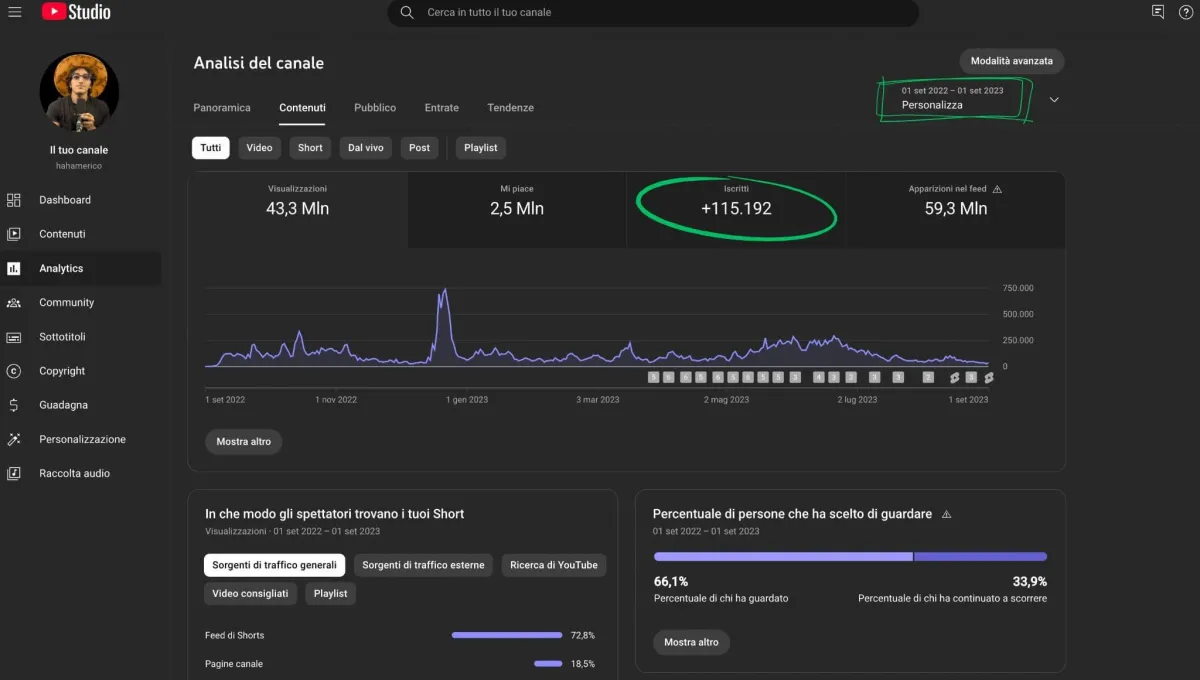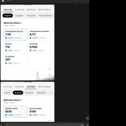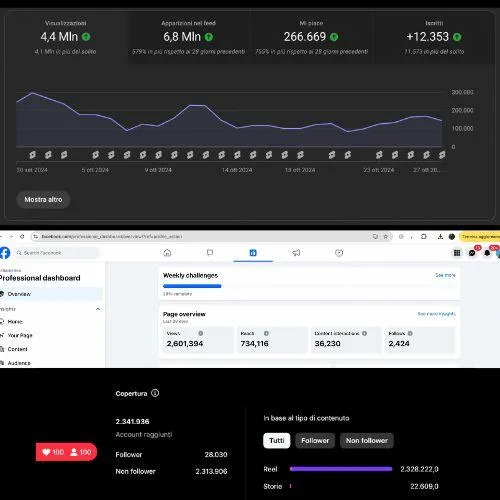 Ad oggi continuo a macinare Milioni di visualizzazioni su tutte le piattaforme totalmente in organico: Youtube 4 milioni, Instagram: 2.3 milioni, Facebook: 2.6 Milioni, Tiktok: 3 milioni. Ciò che pratico è ciò che condivido con gli altri creator e professionisti.