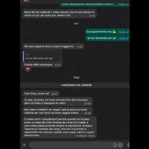 "Devo dirti solamente grazie perché mi hai aperto un mondo. Con costanza e dedizione ho raggiunto risultati che non avevo mai visto prima"